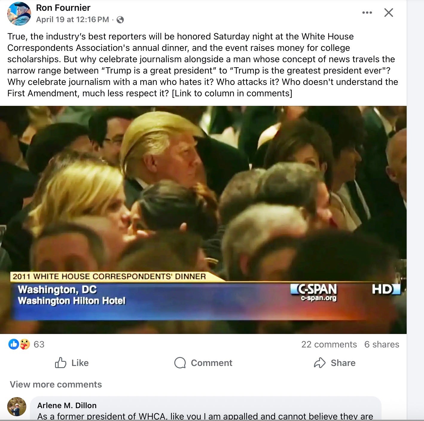 Yet members of the WHCA are publicly trashing President Trump for attending: